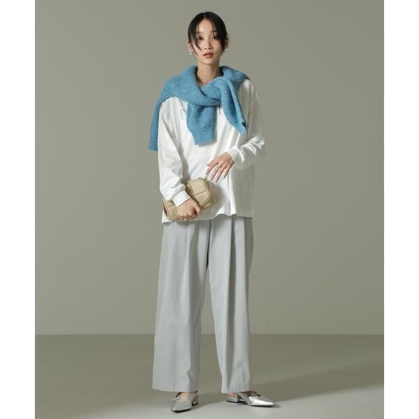 フロントに入ったツータックが、腰回りをスッキリ見せてくれるワイドパンツ。程よいワイドシルエットでトップスの裾イン・アウトどちらもバランス良く様になるので、キレイ目〜カジュアルまで幅広いスタイルに活躍します。