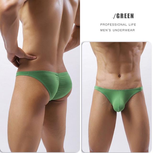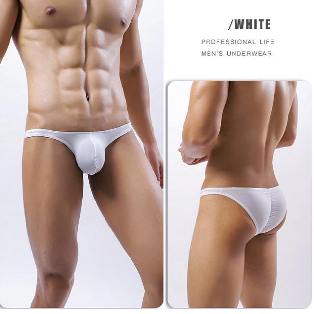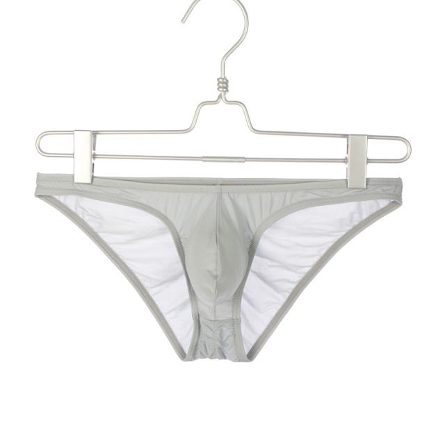 前部分のポーチが立体ポーチで、男性自身の納まりが前部にロケットのように飛び出すタイプで、とても男らしく見えるメンズビキニです。バックにはシャーリングが入っており、お尻の形状も綺麗に見えます。ハーフバックのローライズパンツで、シンプルで履きやすい一枚です。