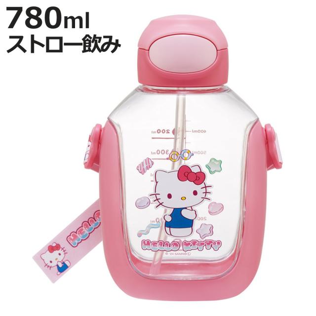 水筒 780ml ワンプッシュストローボトル キティマシュグミ ( キティ ストローボトル 目盛り クリアボトル ワンプッシュ ワンタッチ ストロータイプ 子供 子供用水筒 ショルダーベルト 幼稚園 保育園 キッズ )