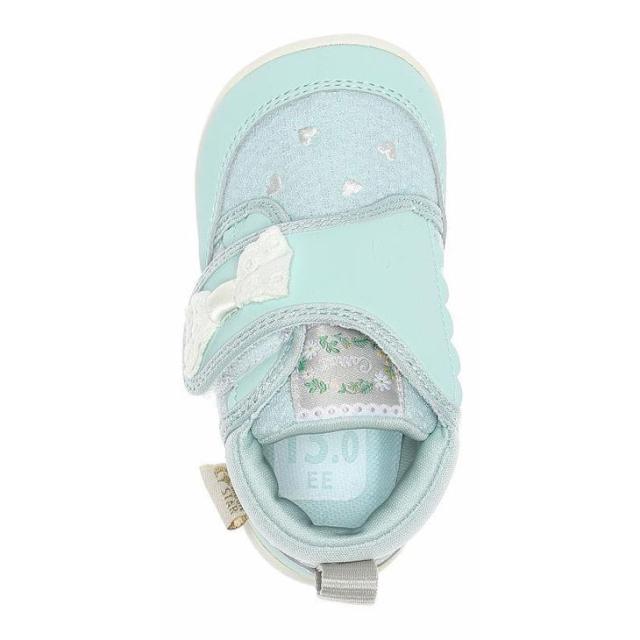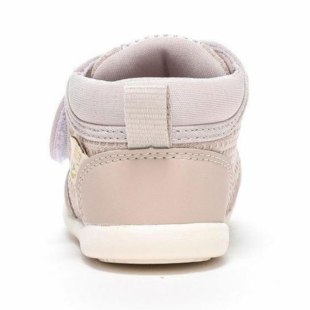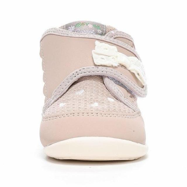 柔らかいアッパーのメッシュにはハートの刺繍を、甲バンドにはナチュラルで優しい