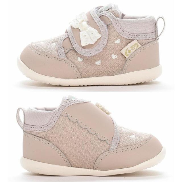 ムーンスター キャロット ベビーシューズ 女の子 スニーカー Kinarinoco ファーストシューズ 12-14.5cm 2E 子供靴 ベビー靴 子ども リボン ハート柄 かわいい お花 運動靴 機能性シューズ ブランド moonstar carrot 月星 くつ ギフト 出産祝い/CR-B162