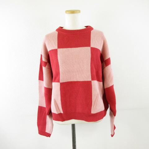 【中古】シールームリン SEA ROOM LYNN ニット セーター 長袖 チェック 赤 ピンク F *A971 レディース