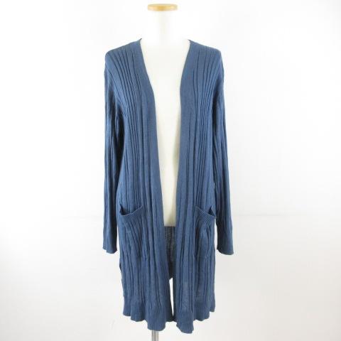【中古】ニットカーディガン 長袖 青 M *T491 レディース