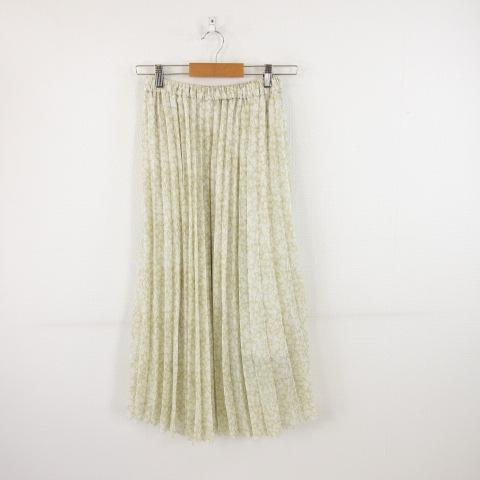 【中古】ローリーズファーム LOWRYS FARM ロングプリーツスカート フレア 花柄 ベージュ 白 F *A83 レディース