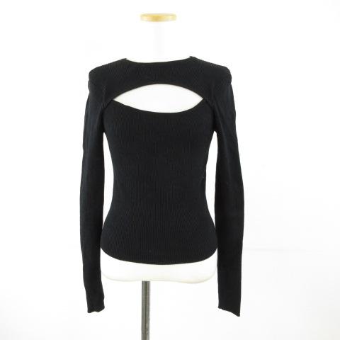 【中古】ベルシュカ Bershka カットソー 長袖 リブ 黒 L *T408 レディース