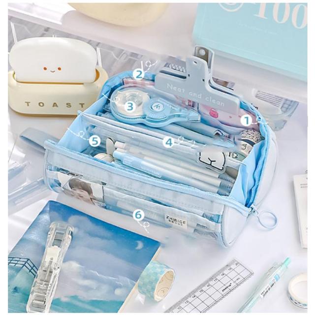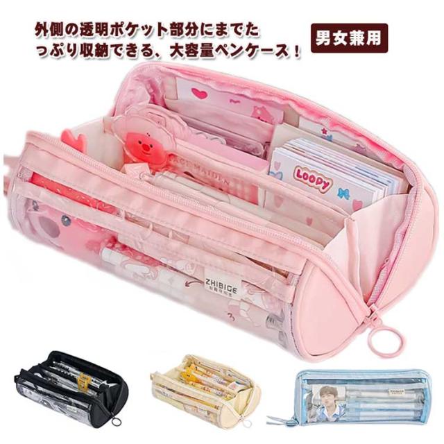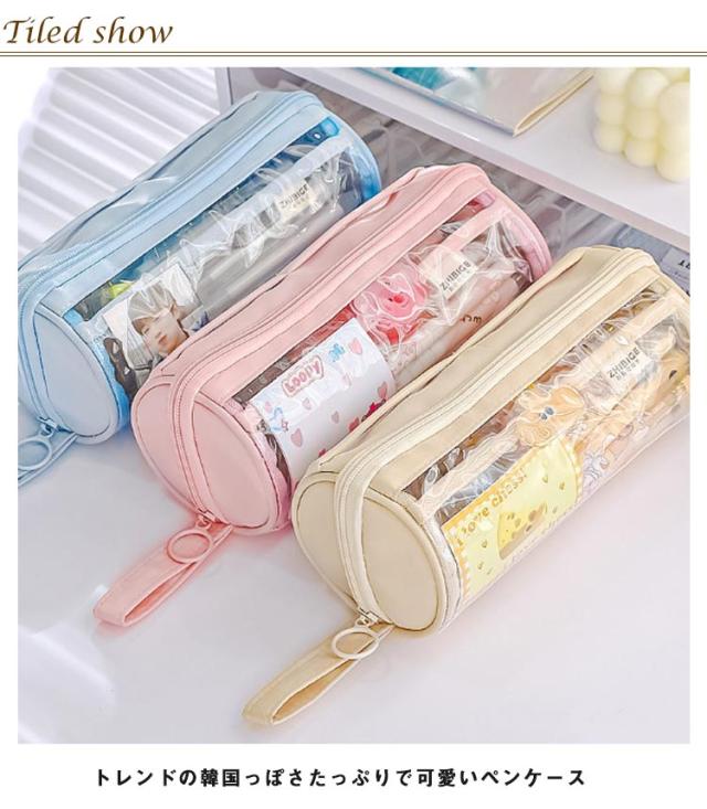 かわいい ふでばこ 大容量 透明 大学生 韓国 筆箱 小学生 ペンポーチ ペンケース 中学生 筆入れ 可愛い ペン袋 高校生 外側クリア ペンケース 化粧ポーチ ツールペンケース 小学生入学 男女兼用 おしゃれ 進学 文房具 可愛い インス映え