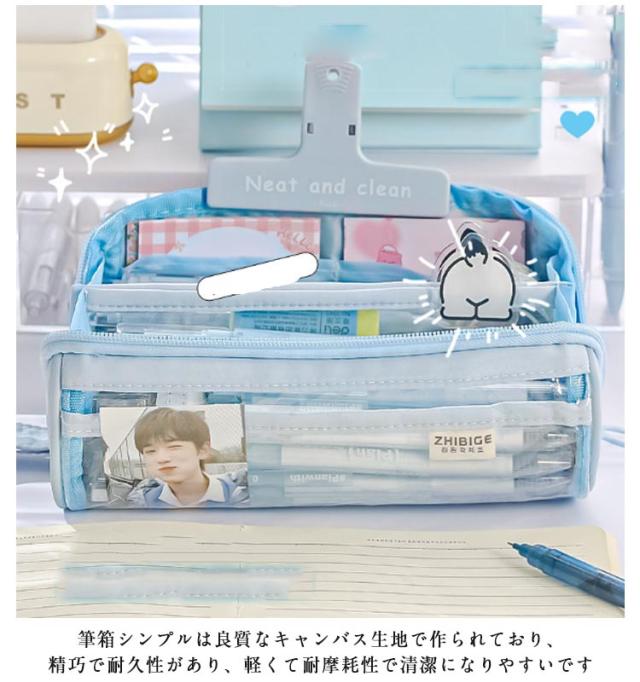 | 外側の透明ポケット部分にまでたっぷり収納できる、大容量ペンケース! トレンドの韓国っぽさたっぷりで可愛いペンケース 筆箱シンプルは良質なキャンバス生地で作られており、精巧で耐久性があり、軽くて耐摩耗性で清潔になりやすいです しっかりとした生地と豊富カラーがおしゃれ! ペンなどの文房具やメイクブラシなど収納できます | |