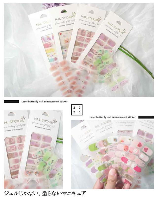 | 7シート入り(98枚セット) 3D フットネイル 貼るだけで完成 超ロングネイルにも 薄いシート状なので、爪にぴったりフィット ジェルじゃない、塗らないマニキュア 1.乾かす時間が不要 液体のマニキュアを薄いフィルム状にしているので、貼るだけで完成。 2.簡単、爪でカット ハサミなどのツールが必要ないので、どこでも簡単にネイルができます。 3.除光液でオフ マニキュア成分でできているので、落とすときには除光液を使います。 | |