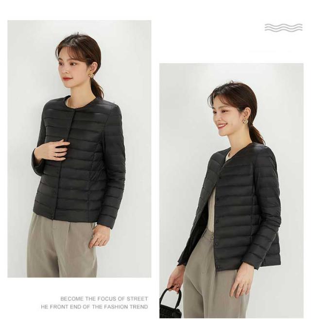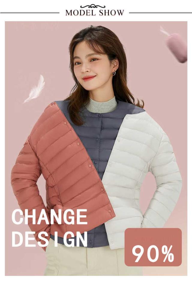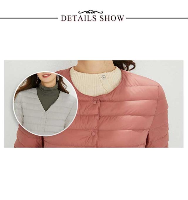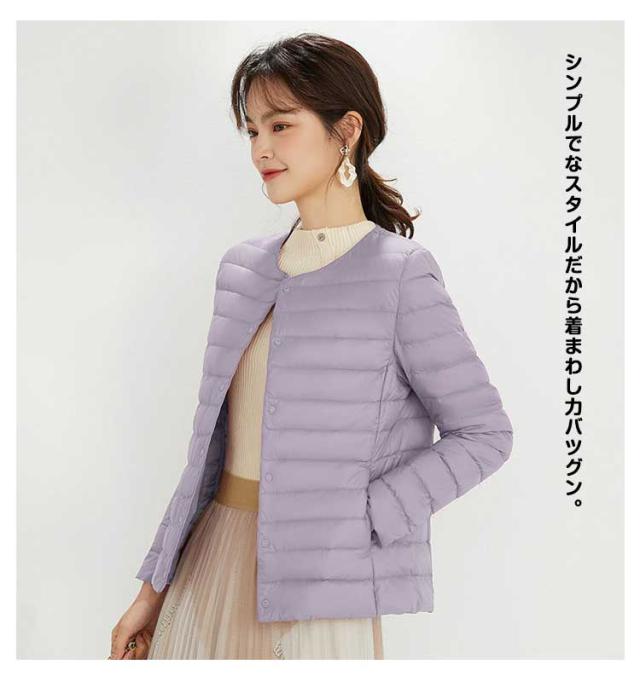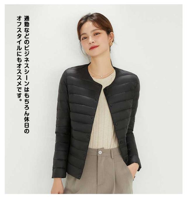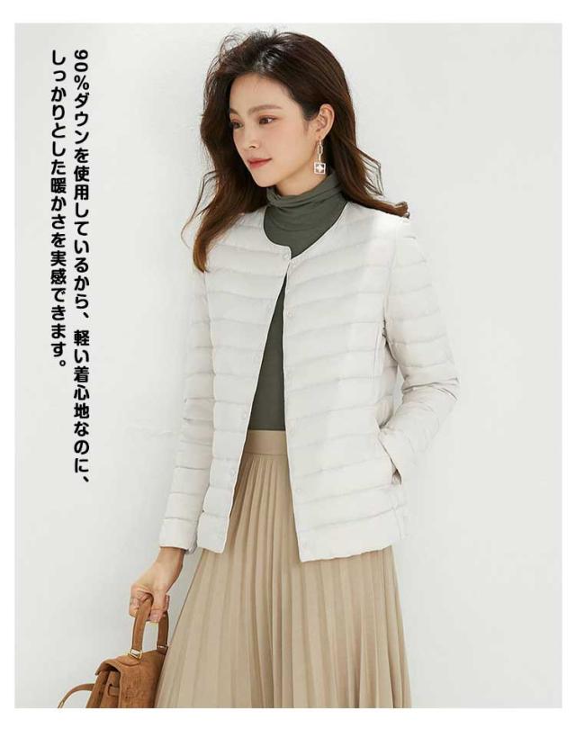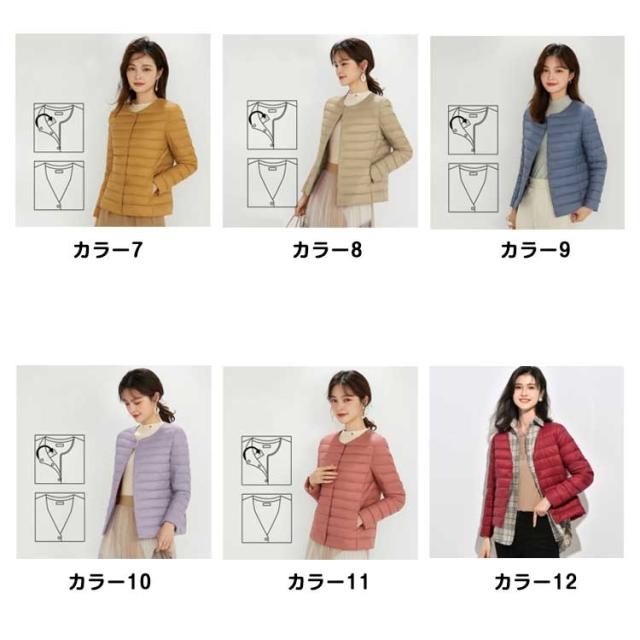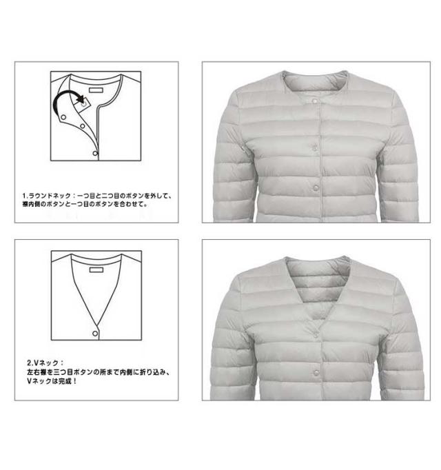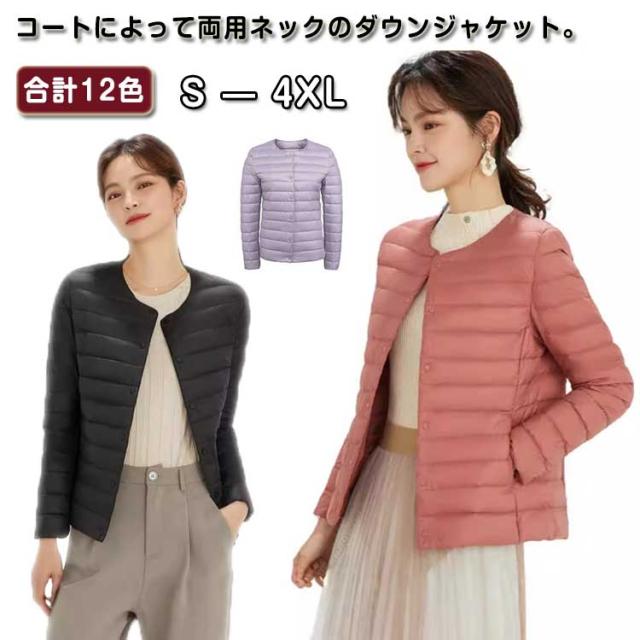 ラウンドネックとVネック自由に変更、2wayネック!ダウンジャケット レディース ショート ノーカラー 薄手 撥水 ライトダウン ライトダウンジャケット 薄手ダウン インナーダウン 大きいサイズ きれいめ 暖かい 秋服 冬服 S M L XL 2XL 3XL 4XL