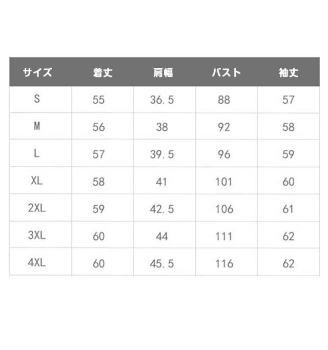 | サイズ | S M L XL 2XL 3XL 4XL |
