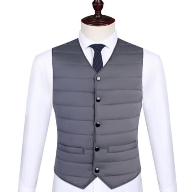 | 【ダウンベスト】【中綿入り】【防寒・暖かい】 フォーマルシーンにもピッタリの大人の気品漂うダウンベスト。 コンパクトなシルエットで、スーツの中に重ねても着ぶくれしないのでインナーベストとしても大活躍。 Vネックは少し深めにしてあり、丈も短くしたことでよりすっきりとしたシルエットに。 肩から腰まですっぽり包み込み暖かい。 着脱簡単な前ボタンタイプ。 携帯に便利な軽さで、コンパクトに折りたためるので持ち運びしやすい! ※作りはスリムなので、通常より 1サイズ〜2サイズ上がおすすめです。 | |
