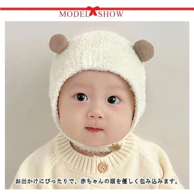 クマさん 帽子 ベビー ニット帽 赤ちゃん クマ くま ベビー帽子 新生児帽子 赤ちゃん帽子 ボア帽子 ふわふわ 暖かい 新生児 帽子 冬 耳付き ポンポン付き キッズ 子供 暖かい 可愛い 寒さ対策 子ども ハロウィン クリスマス プレゼント ギフト