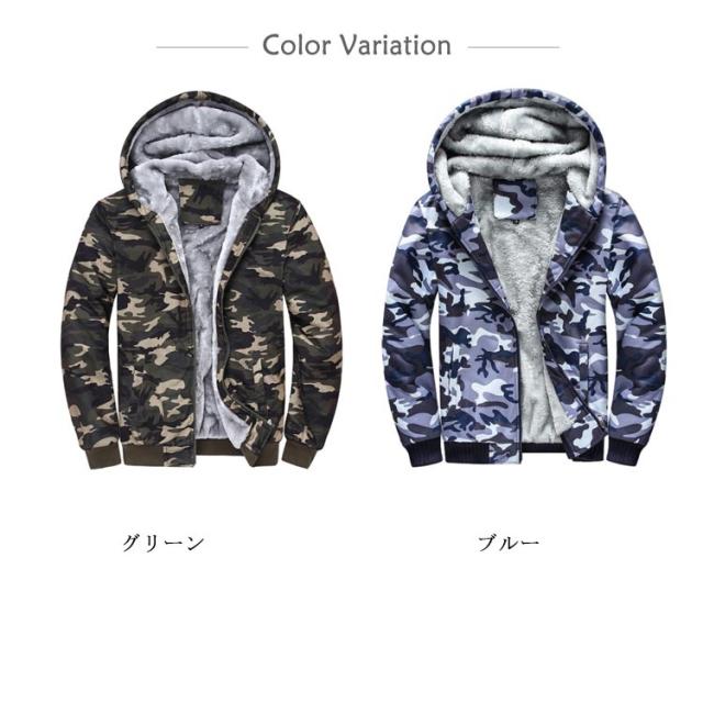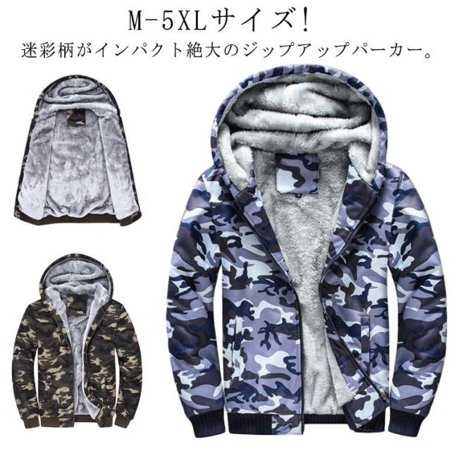 ジャケット 迷彩柄 裏起毛パーカー メンズ ジップアップパーカー パーカー カモフラージュ ボアパーカー 厚手 防寒 冬物 ブルゾン ジャンパー ボアパーカー アウター 秋冬 大きサイズ カジュアル