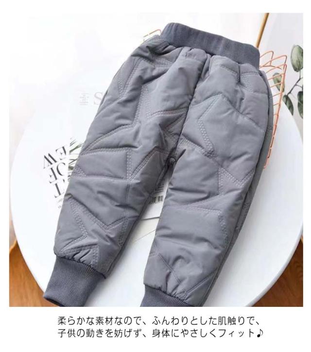 | 保温性、快適性が優れて身体をやさしく包み込んで真っ冬には防寒対策として欠かせない中綿パンツ 保温性抜群の中綿素材を使い、寒い季節に大活躍。 柔らかな素材なので、ふんわりとした肌触りで、子供の動きを妨げず、身体にやさしくフィット♪ 子どものボトムスをしっかり覆われているので、気温が低い日、風が冷たい日に公園、雪遊びなど時に重宝するパンツです。 | |