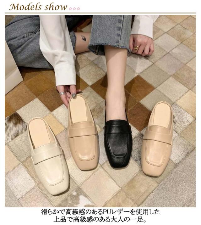 ミュール ローファーサンダル レディース ローファーサンダル ローファー レディース かかとなし ローヒール フラットシューズ スリッパ サボシューズ サボサンダル スリッポン つっかけ マニッシュ カジュアル スクエアトゥ おしゃれ 大人 女子 送料無料