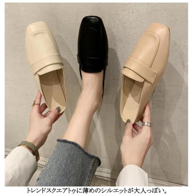 | 踵なしで楽々履けるローファー。 滑らかで高級感のあるPUレザーを使用した上品で高級感のある大人の一足。 トレンドスクエアトゥに薄めのシルエットが大人っぽい。 アウトソールは屈曲性が高く、歩く足にしっかりフィット。 底は滑り止め加工で、安定感も◎ | |