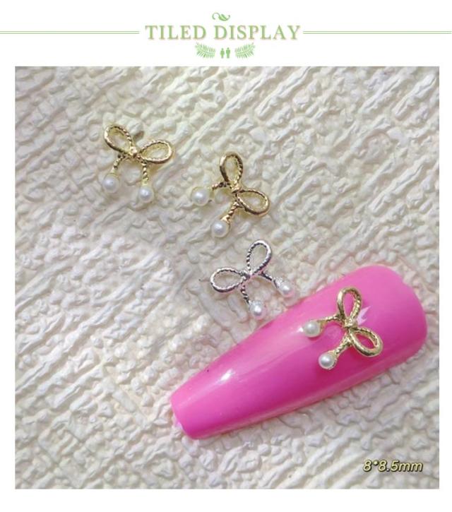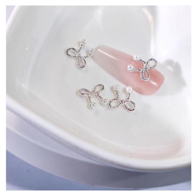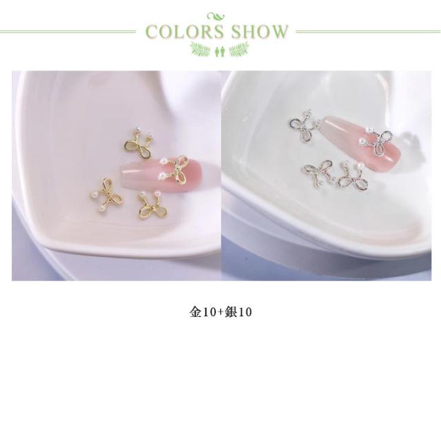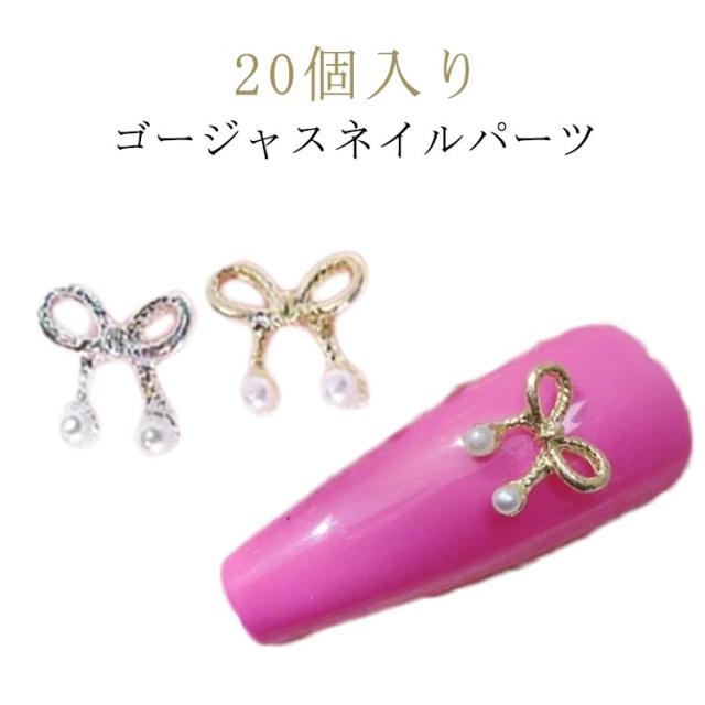 ネイルパーツ 20個 シルバー ジュエリー パーツ リボン パール クリスタルストーン チャーム ゆめかわ ネイルパーツ ネイル ジェルネイル デコパーツ りぼん