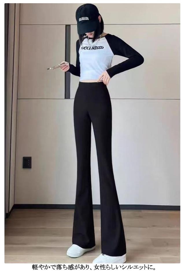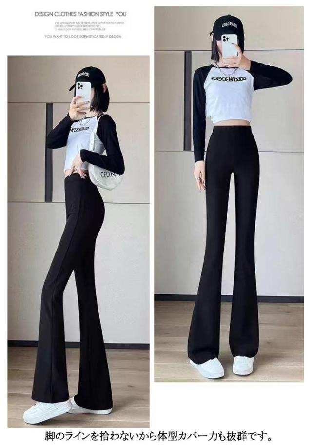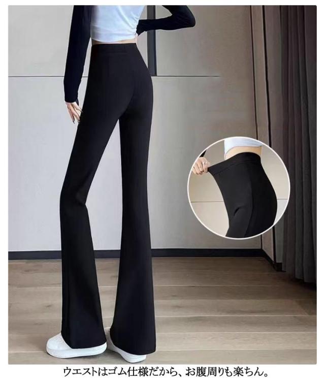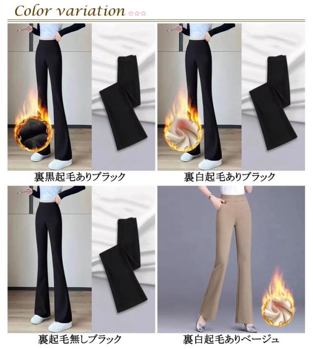 無地 ロングパンツ ウエストゴム ストレッチ フレアパンツ ボトムス 脚長 大人 ロング 体型カバー パンツ 40代 パンツ フレアレギンス 20代 ロングパンツ レディース フレアパンツ 30代 裏起毛 OL 通勤 大人 カジュアル オフィス 秋 冬 秋冬 黒