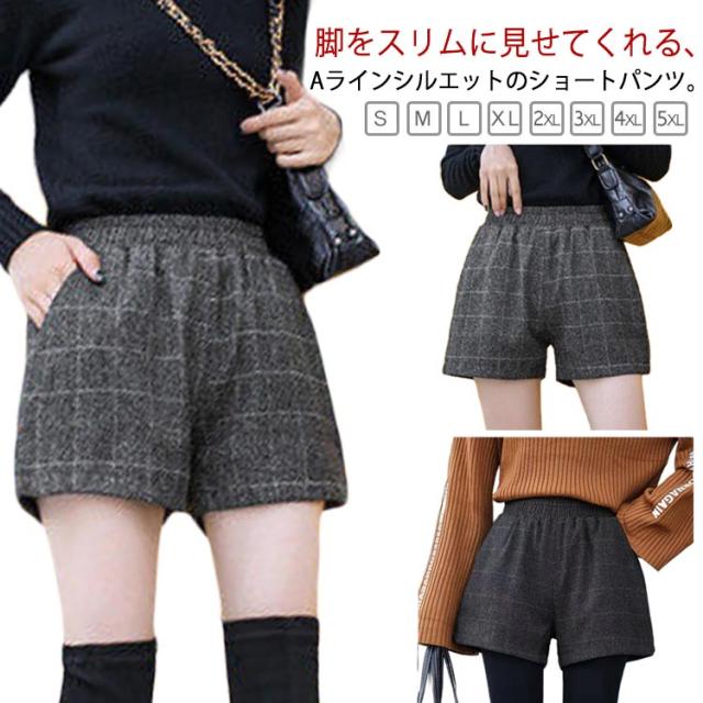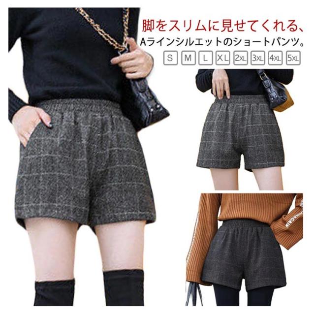 短パン レディース ショート丈 厚手 パンツ 美脚 ウール風 ハーフパンツ 起毛 キュロットパンツ 冬 ワイドパンツ ショートパンツ Aライン きれいめ 大人 カジュアル ハイウエスト 暖かい ゆったり ウエストゴム おしゃれ 半ズボン 無地 秋 秋冬 冬