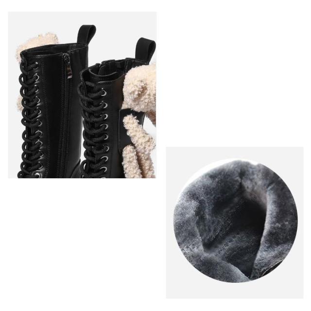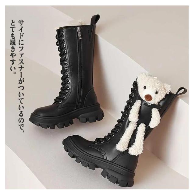 レースアップ サイドジップ 熊 女の子 裏起毛 ロングブーツ ダンス 厚底 春 フェイクレザー 秋 おしゃれ レースアップ 編み上げ 冬 子供靴 歩きやすい 履きやすい 脱ぎやすい ダンス靴 ジャズ