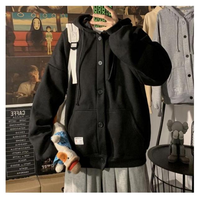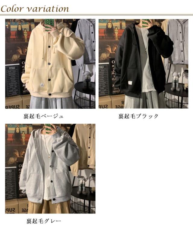 パーカー メンズ スウェット 裏起毛 厚手 長袖 アウター ボタンパーカー フード付き トップス ゆったり ビッグシルエット 大きいサイズ 羽織 パーカ スタジャン ジャンパー ブルゾン 前開き ボタン留め カーディガン 春 秋 冬 カジュアル ジャケット 部屋着 おしゃれ