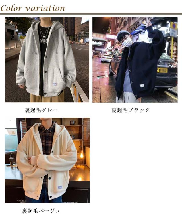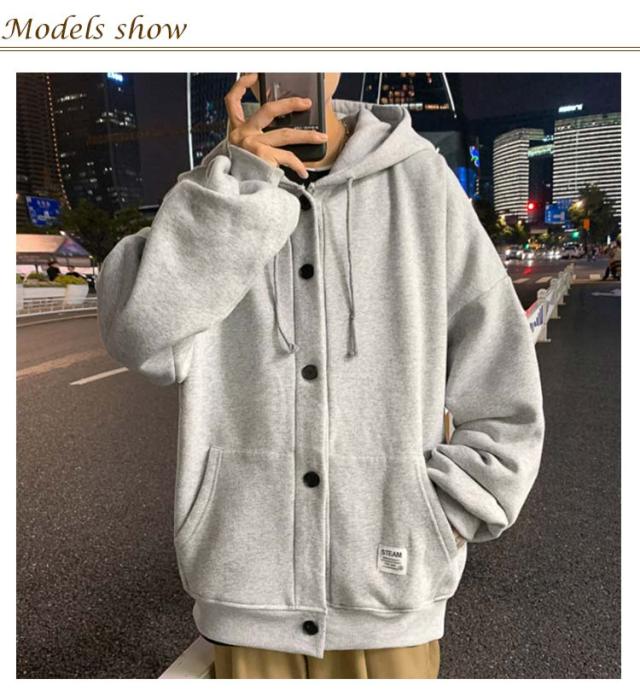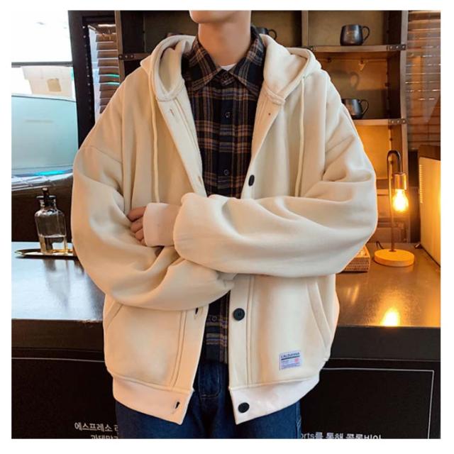 パーカー メンズ スウェット 裏起毛 厚手 長袖 アウター ボタンパーカー フード付き トップス ゆったり ビッグシルエット 大きいサイズ 羽織 パーカ スタジャン ジャンパー ブルゾン 前開き ボタン留め カーディガン 春 秋 冬 カジュアル ジャケット 部屋着 おしゃれ