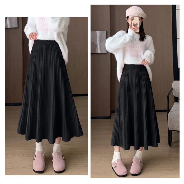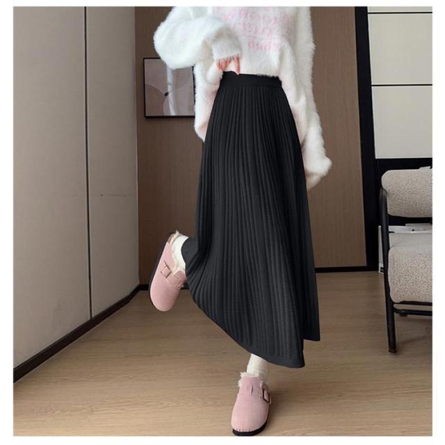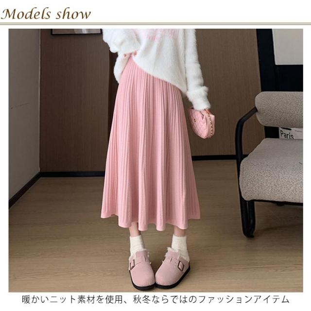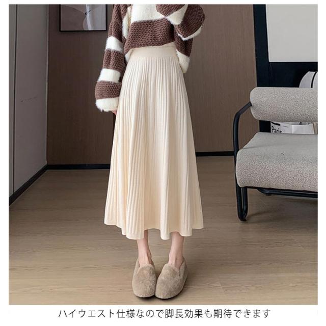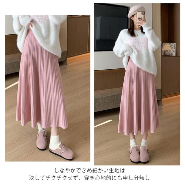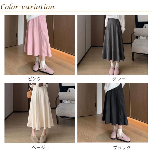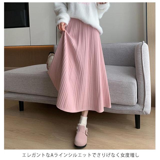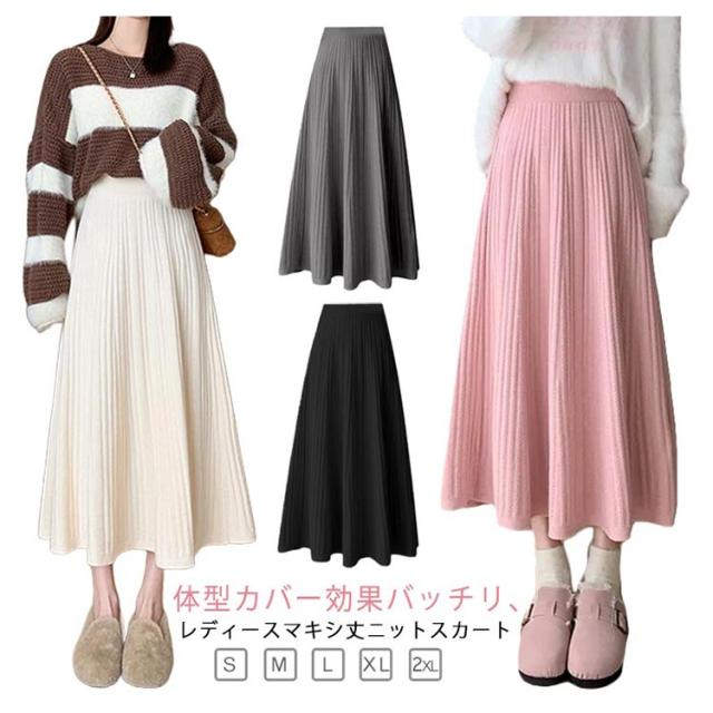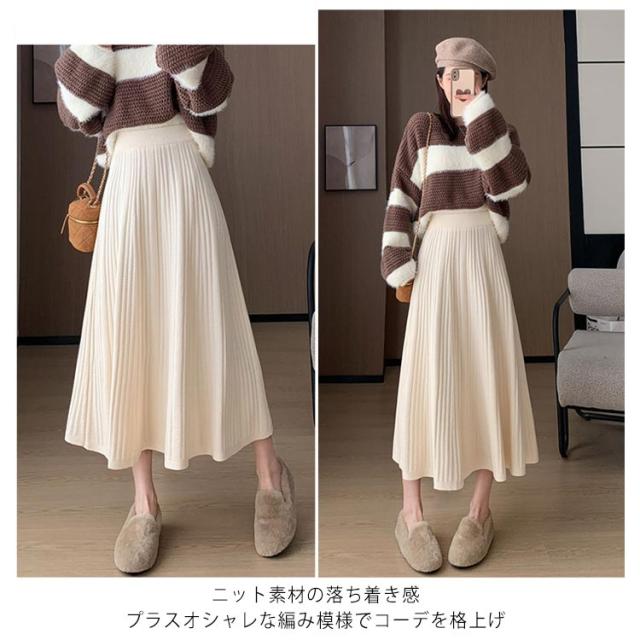 マキン丈 ケーブルニット レディース プリーツニットスカート ハイウエストスカート ロングスカート 春 ニットスカート Aライン ウエストゴム 秋冬 フレアスカート ボトムス エレガント カジュアルスカート 大人っぽい 通勤 デート ニットスカート S M L XL 2XL