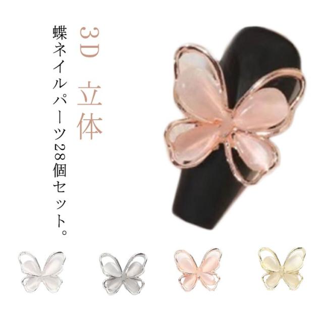 ネイルパーツ 蝶々 28個セット 3D 立体 蝶 ネイルストーン クリア キャットアイ 蝶パーツ ネイルパーツ 大きめ 可愛い ネイルアート デコパーツ バタフライ ジュエリーパーツ ネイル用 キラキラ ビジュー メタルパーツ DIY 手作り 手芸 ハンドメイド ゴールド シルバー