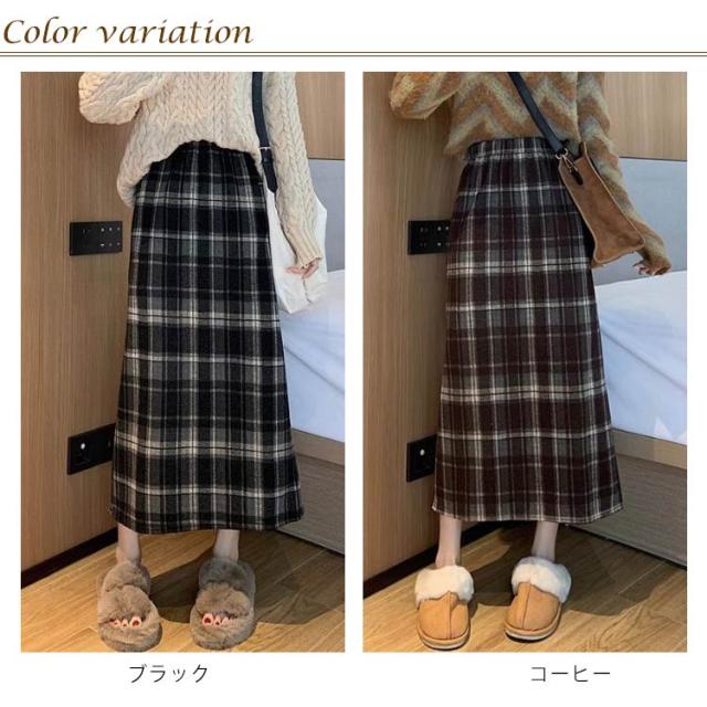 タイトスカート ロングスカート 暖かい チェック柄 レディース 秋冬 防寒 マキシスカート スカート コーデュロイ 裏起毛スカート XL ウエストゴム カジュアル おしゃれ 通勤 オフィス 大人 履きやすい 動きやすい 体型カバー 送料無料 M L 裏起毛 2XL
