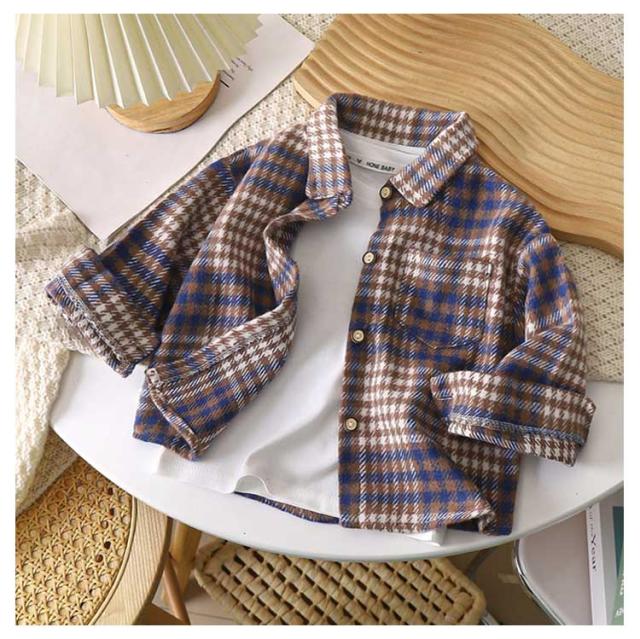 | 90cm〜150cm 起毛感あるキッズネイルシャツ 秋冬のおしゃれを彩ってくれるアイテム 様々なスタイリングに合わせやすい 季節感のある落ち着いた色味に仕上げました 1枚で着るのはもちろん、羽織として着用するのもおすすめ | |