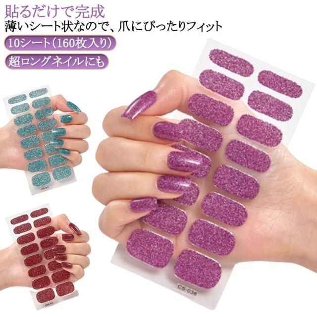 ジェルネイル 貼るだけ ネイル フット セルフネイル ジェル ネイル ネイル フット 半硬化 10シート/160枚入 貼って硬化 ネイル シンプル 硬化タイプ 簡単 キラキラ おしゃれ ネイル フット ネイル