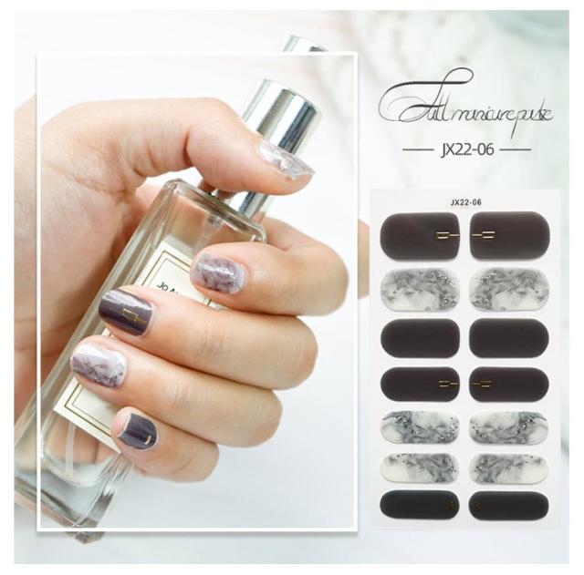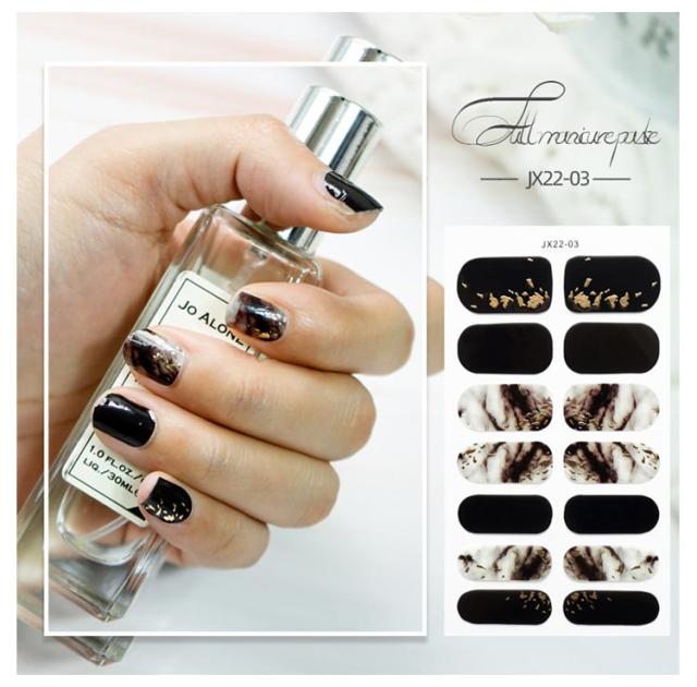 | サイズについての説明 | 14シート入り(196枚セット) 【ご使用前に】 ●爪に油分や水分、汚れが付着しているとが剥がれやすくなりますので、爪の表面をキレイに拭き取ってください。 ●甘皮を処理し、付属のファイルなどで爪の形や表面を整えるとよりキレイに仕上がります。 ●シートからネイルを剥がす際にはシートの外側部分を持って剥がしてください。 (1)製品を爪に合わせ、爪よりも少し小さめのネイルをお選びください。 (2)キューティクルラインと1mmほどの余裕があるところにネイルを貼ってください。 (3)ネイルを貼って余りのは爪の形に合わせて折ってください。 ファイルを利用して、爪の下の方向に向けて余りのネイルを削ってください。 (4)お好みの硬化方法を選んでください。 ・寝る前に貼り硬化する場合 ・自然光で硬化する場合:約2時間(自然光が多い室内と室外にて) ・UV&LEDライトで硬化する場合:約30秒 【剥がし方】 ●ウッドスティックでキューティクルラインからゆっくり押出しながら剥がしてください。 |
