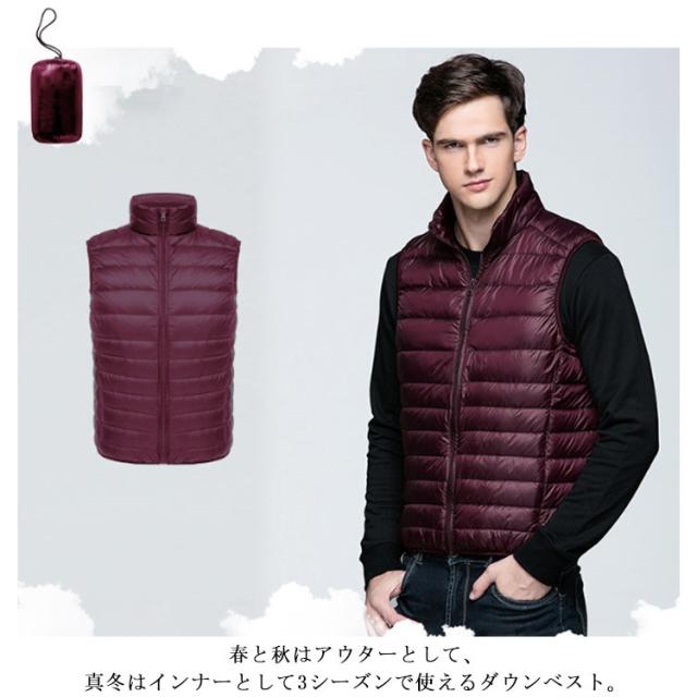 ダウンベスト メンズ インナーダウン ダウンジャケット 防寒 リアルダウン 保温 無地 インナーベスト 暖か 軽量 重ね着 登山 秋服 冬服 キャンプ アウトドア ゴルフ 大きサイズ 30代 40代 50代 敬老の日 ギフト 送料無料