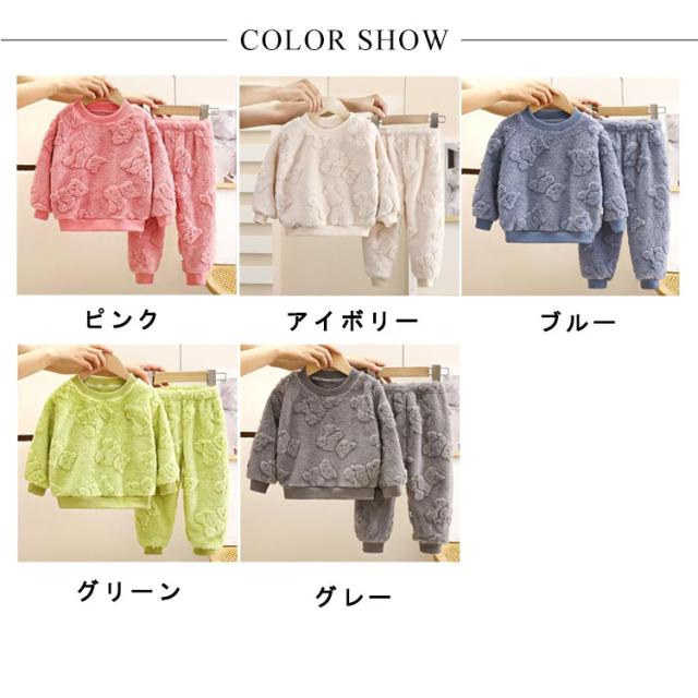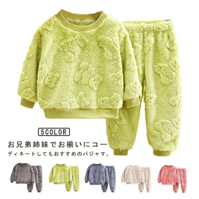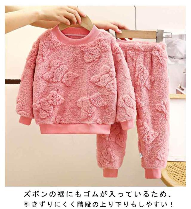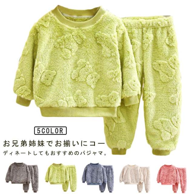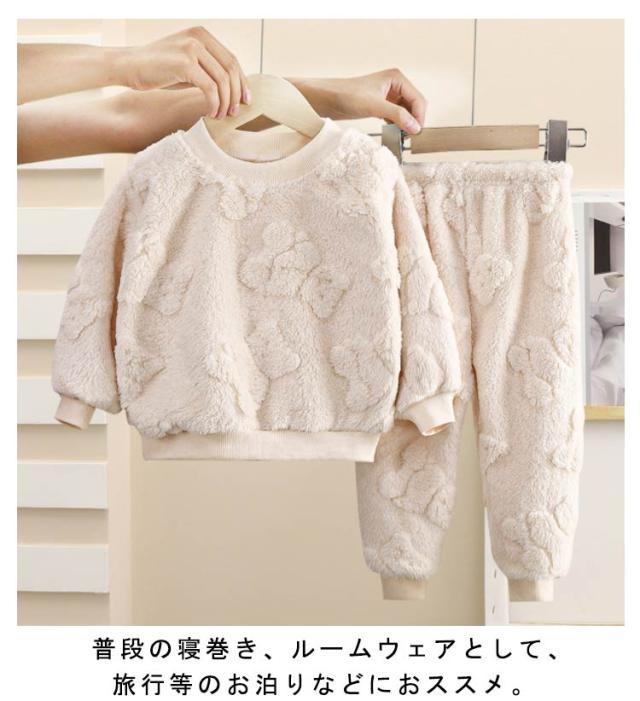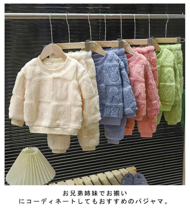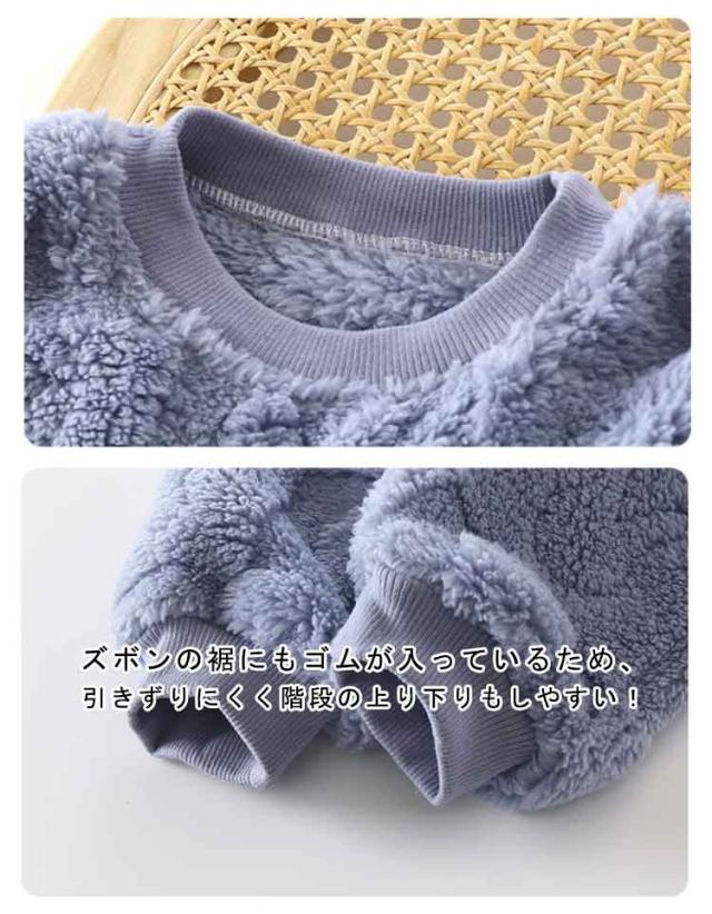 上下セット キッズ ルームウェア あったか 防寒 保温 もこもこ ふわふわ パジャマ 可愛い セットアップ 秋冬 子供服 パジャマ 暖かい クルーネック ロングパンツ 寝巻き ナイトウェア 部屋着 90 100 110 120 130 140 150 送料無料