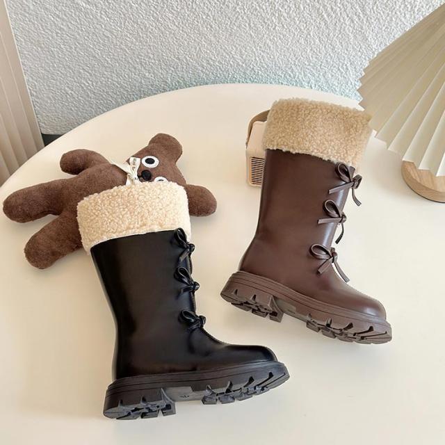おしゃれ キッズ 秋冬 可愛い トリプルリボン 女の子 トリプルリボン 裏起毛 子供 キッズ靴 キッズブーツ 子供ブーツ 可愛い 暖かい防寒ブーツ 韓国ファッション