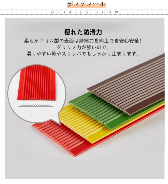| 階段のステップ・スロープや床の滑り止めに 屋内外兼用階段滑り止めシート 幅3cm×長さ5M 全10色 「階段滑り止めシート」 階段は家庭内で事故が起きやすい場所!高齢者や小さなお子さまの転倒防止に! ・一人暮らしの高齢者 ・子どもは怪我をしやすい ・妊娠中は行動が不便 ・階段や滑りやすい水場 ・床タイルは滑りやすく、雨天時はさらに危険 はがして貼るだけ!!階段滑り止めテープで屋内 屋外の事故を防ぎ安全対策! ■貼るだけ簡単設置 表面は強力な両面テープになっており、貼り付け面を拭いた後は?離紙をはがして貼りたい場所に貼るだけ! 転倒防止事故のリスクのある場所にお役立てください。屋内外兼用、全般に対応できる万能タイプの滑り止めストリップです。 ■優れた防滑力 柔らかいゴム製の表面は摩擦力を向上でき安心安全! グリップ力が強いので、滑りやすい靴やスリッパでもしっかり止まります。 ■高品質・高耐水・強粘着・耐磨耗性 高温・低温にも強く燃えにくい特性、防油、防水と柔軟性に優れたテープ。 強粘着性と耐磨耗性があり、繰り返し踏みつけても大丈夫! 防水仕様で、雨と雪の降る場所で長年たっても剥がれる心配もなし。 ■フリーカット 家庭用のハサミで必要な長さに簡単にカット出来ます。 ■豊富なカラーバリエーション 内装や床色などに合わせて選べる8色のカラーバリエーション。工場・飲食店・デパート・ホテル・学校・幼稚園・保育園・スポーツジムなど人が多くスリップ事故のリスクの高い場所には、目立ちやすい明るいカラーを貼り付けて転倒 事故防止におすすめ。公共施設にもお使いいただける、セーフティ用品 転倒防止グッズです。 ■様々なシーンで活躍 施設利用:ホテル、レストラン、病院、学校、駐車場、遊び場、駅、オフィスビル、娯楽施設など。 家庭利用:部屋・階段、浴室、洗面所、トイレ、キッチン、玄関、リビングルーム、脚立の踏み台など。 貼り付けに適した表面:セメント、セラミックタイル、滑らかな石、木質金属、ガラス、塗装面、紙面、プラスチックなどの表面に対応。 使用方法 1: 貼る場所を清潔にする 埃や汚れがあると仕上がりが悪くなりますので、ご注意ください。 2: サイズを測る 貼る場所に合わせて必要な大きさにカットします。 3: 裏紙を少し剥がす 剥がす時、一回全部剥がさないでください。 | |