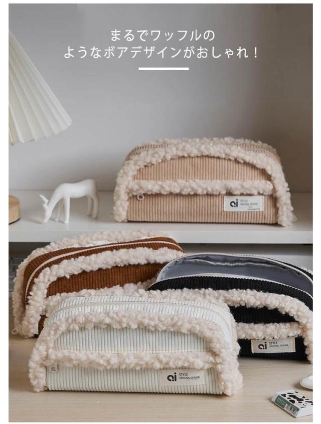 | トレンドの韓国っぽさたっぷりで可愛いペンケース まるでワッフルのようなボアデザインがおしゃれ! ペンなどの文房具やメイクブラシなど収納できます。 | |