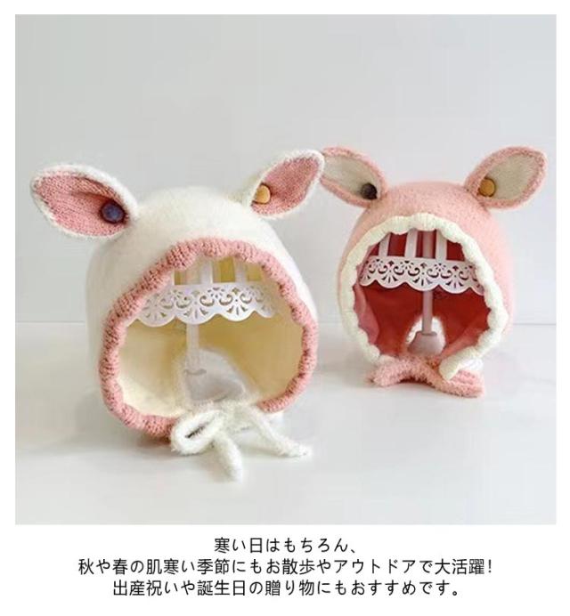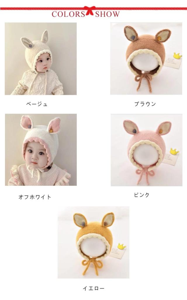 秋 スキー 新生児 うさぎ耳 冬 ベビー ベビー帽子 ニット帽 赤ちゃん 帽子 バンビ バンビ耳 お出かけ 耳付き うさぎ 可愛い うさぎ耳 秋冬 寒さ対策 男の子 紐付き 子ども こども 幼児 キッズ帽子 ニット帽 SNS 韓国 子供服