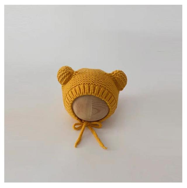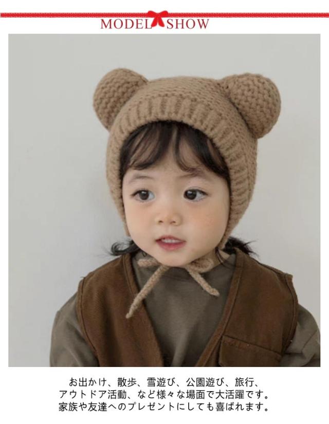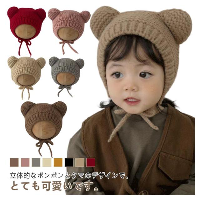 赤ちゃん 耳付き ニットキャップ くま耳 ニット ベビー あったか 帽子 くま 耳当て ニット帽 子ども帽子 ベビー帽子 キッズ帽子 新生児帽子 キッズ 耳保護 紐付き あごひも 伸縮性高く 頭優しい 保温 防寒 寒さ対策 通園