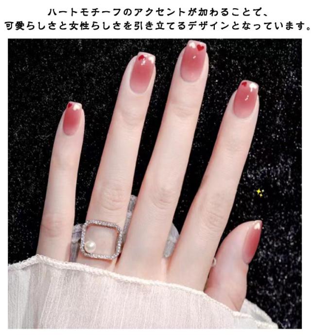 ネイルチップ ネイル用品 ショート ネイルアート お洒落 シンプル ネイルチップ 簡単装着 ネイル用品 24枚入 貼るだけ 花嫁ネイル 光沢感 ハート柄 つけ爪 成人式 入学式 卒業式 結婚式 パーティー 日常使い