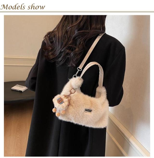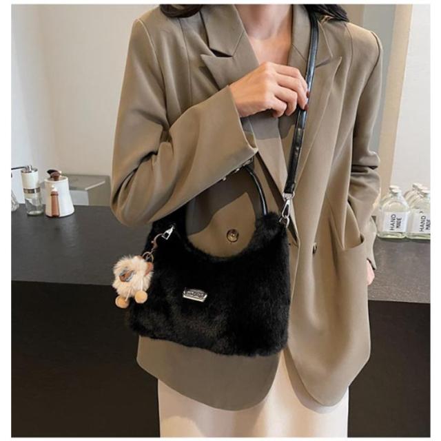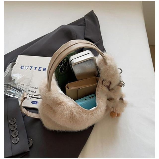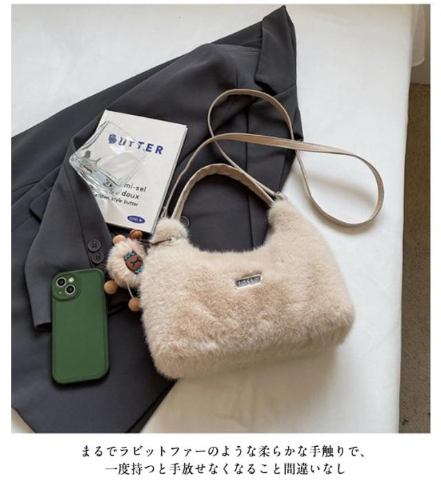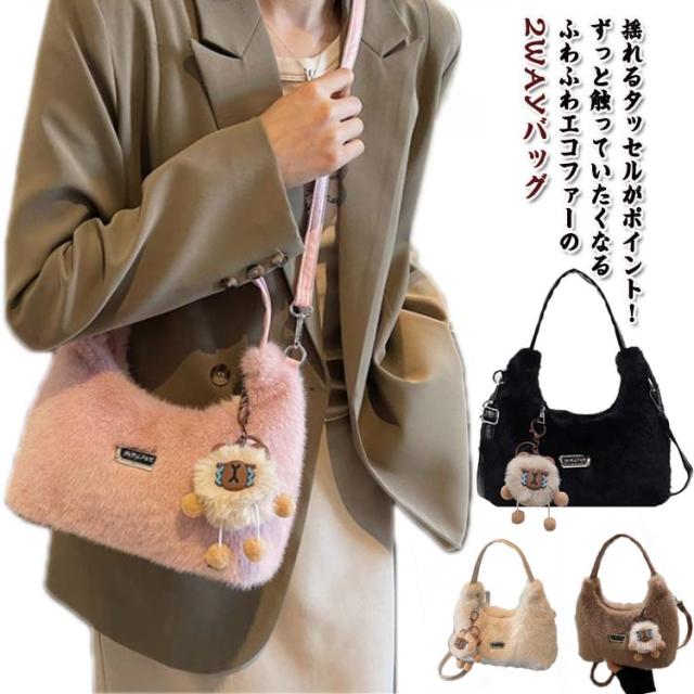 | 揺れるタッセルがポイント!ずっと触っていたくなるふわふわエコファーの2WAYバッグ 使用しているエコファーはリアルファーのようにマットな色味で柔らかい肌ざわり。ふわふわボリューミで存在感抜群です。 まるでラビットファーのような柔らかな手触りで、一度持つと手放せなくなること間違いなし オンにもオフにも活躍するシンプルデザイン。持つだけで季節感が高まるアイテムです | |