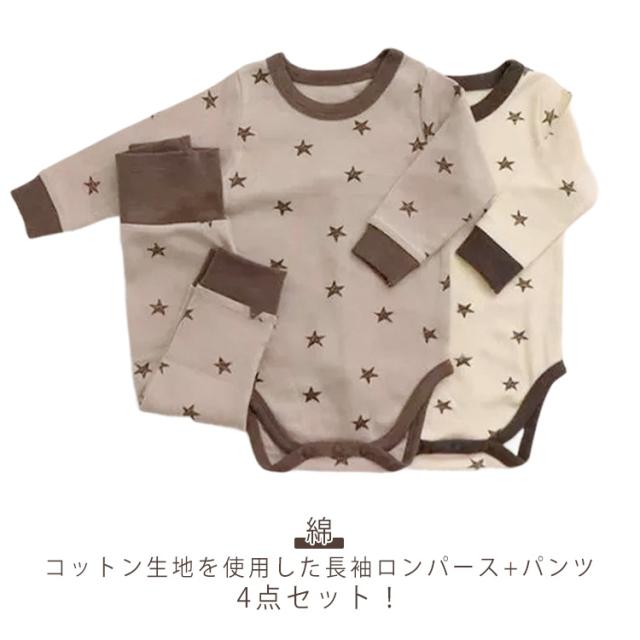 肌着 パジャマ ベビー 66 男の子 0〜12ヶ月 ベビー服 綿 コットン 赤ちゃん ロンパース 女の子 パンツ 長袖 新生児 カバーオール 星柄 子供 ルームウエア 春 秋 ベビー服 4点セット 90 80 冬 100cm 出産祝い