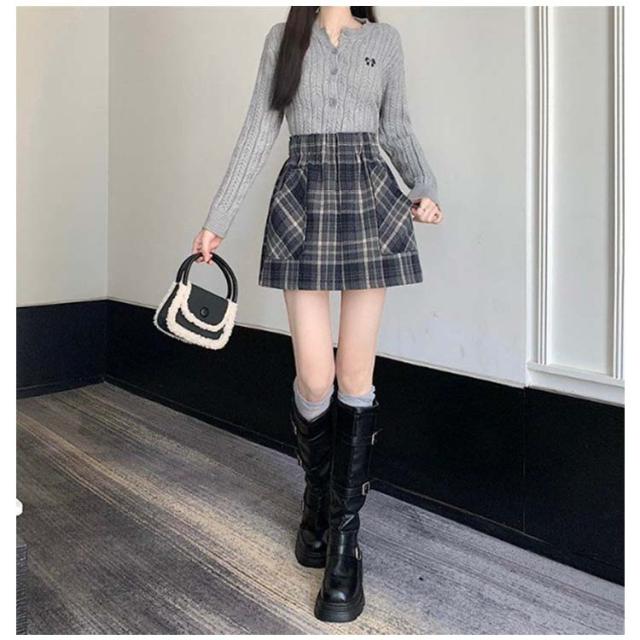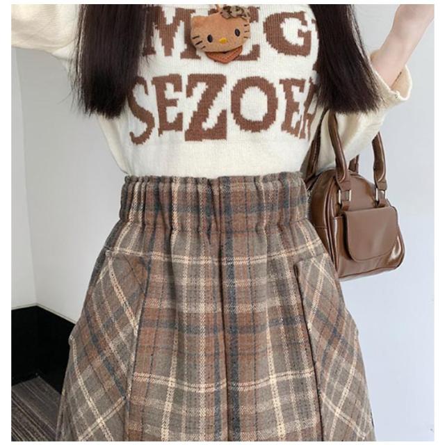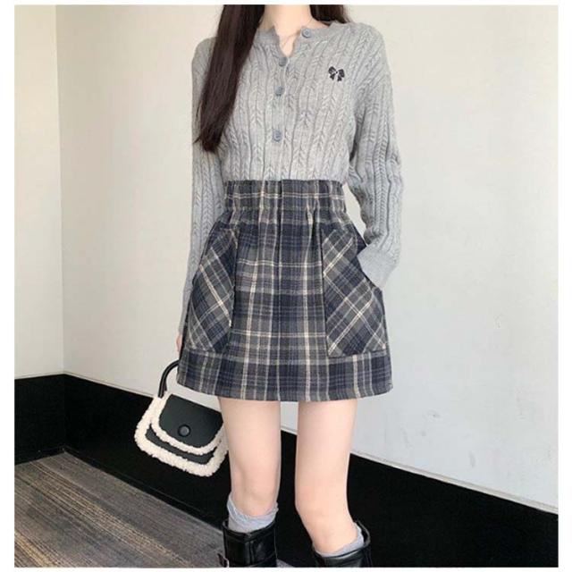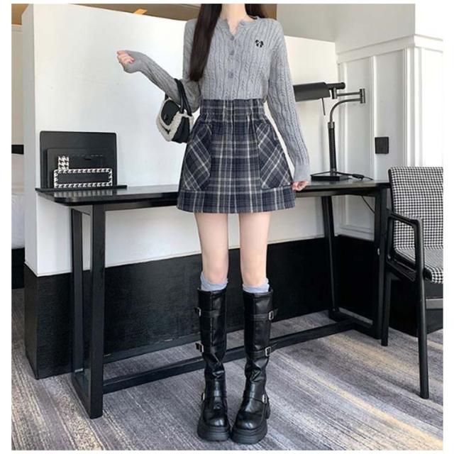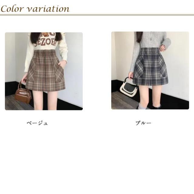 | 秋冬にぴったりでちょっぴりレトロな微起毛×チェック柄デザイン。 ロングブーツとの相性抜群な台形シルエットで今っぽいバランス感に◎ 寒い季節も安心な裏地付きの中厚手の生地を使用。 ウエスト周りがすっきりとしたデザインなのでタックインコーデもオススメ。 | |