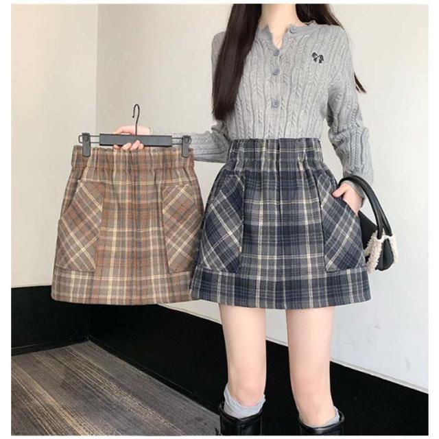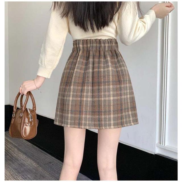 チェック 冬 チェックスカート レディース タイト 秋 裏地付き スカート ミニ ボトムス ウエストゴム 膝上丈 可愛い カジュアル ハイウエスト ストレッチ Aライン きれいめ ミニ丈 お洒落 シンプル フェミニン ミニスカ お出かけ 着回し 普段着 デート