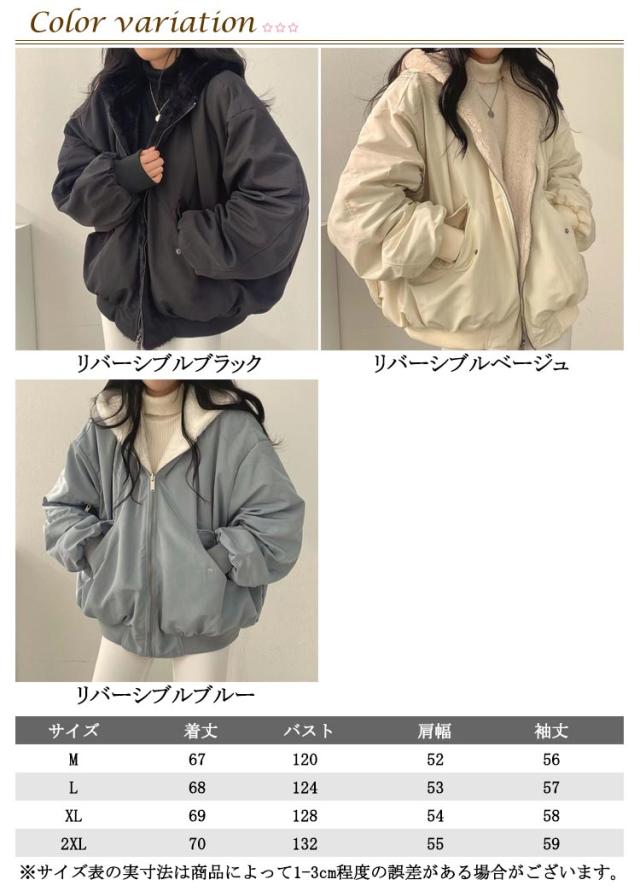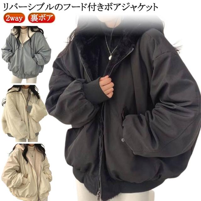 リバーシブル レディース 裏起毛 ボアブルゾン ボアブルゾン ファージャケット ボアジャケット 裏ボア 2way ショート丈 ふわふわ もこもこ あったか 暖かい 長袖 フード付き アウター コート アウター ボアブルゾン 大きいサイズ 秋 冬 防寒 大人 カジュアル