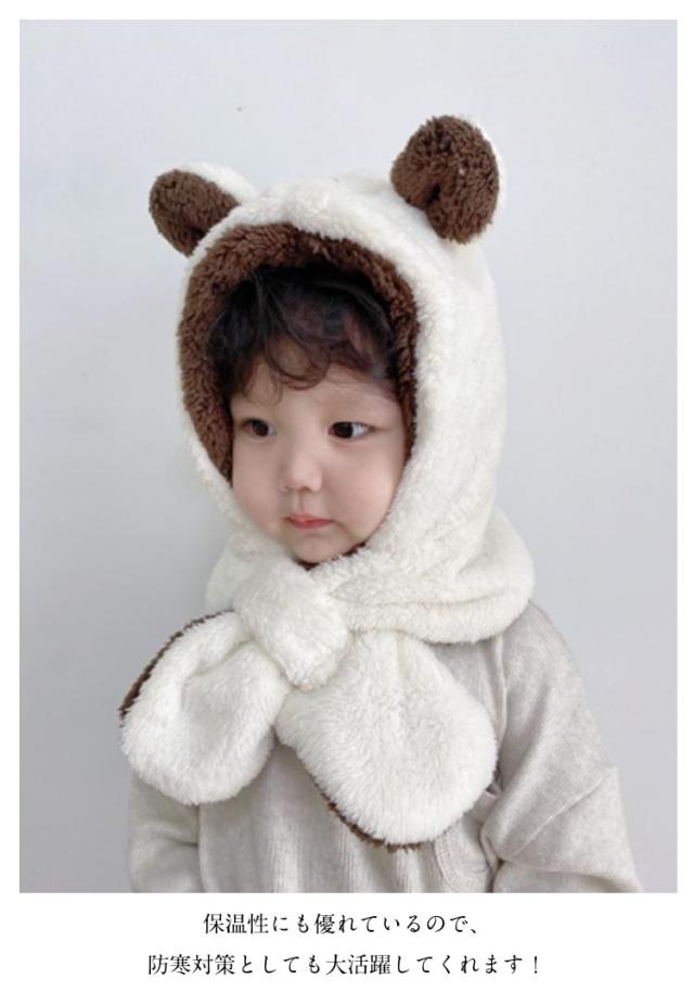 耳付き ベビー うさ耳 帽子 耳あて クリスマス マフラー 被り物 うさぎ キッズ クマ耳 耳付き帽子 くま プレゼント 防寒 ふわふわ ニット帽 女の子 男の子 赤ちゃん もこもこ 裏ボア ネックウォーマー 子ども 子供用 クマ ウサギ アニマル 秋 冬 雪遊び