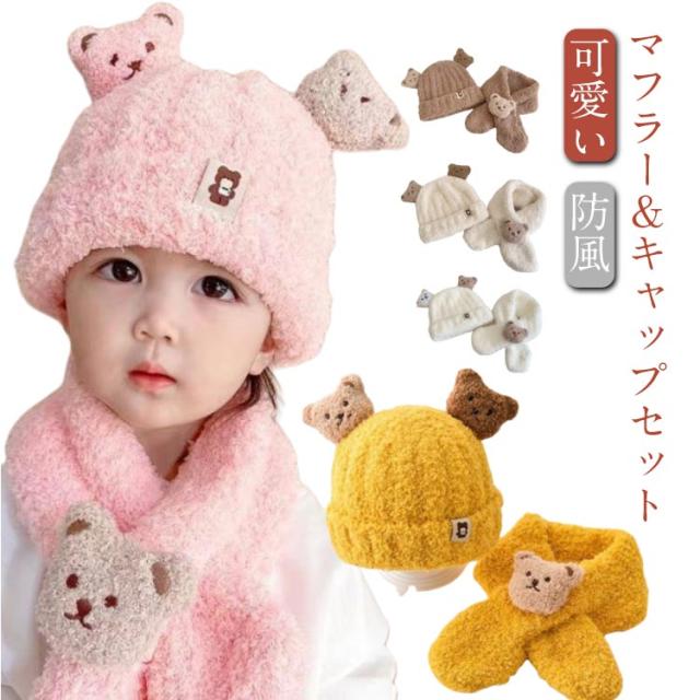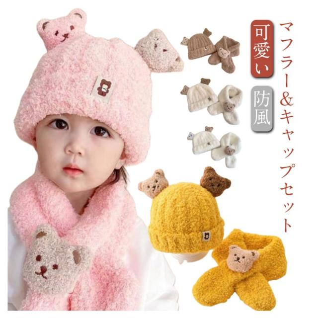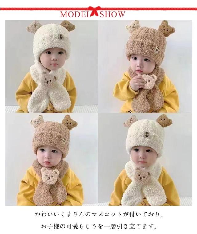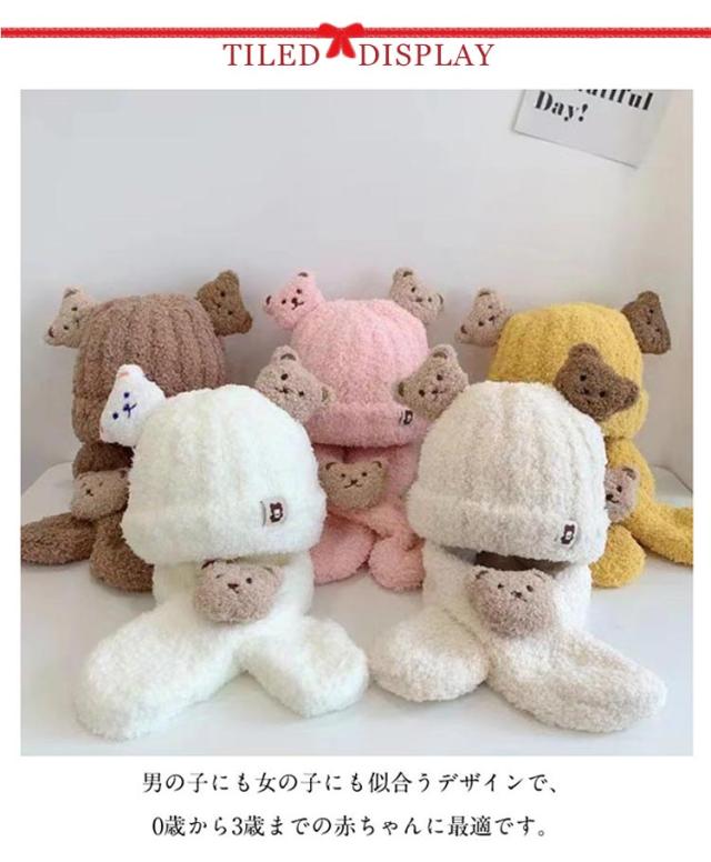 ニット 男の子 マフラー 帽子 秋 マフラー付き 冬 ニット帽 くまマスコット 赤ちゃん ベビー ニット帽 ニット帽子 ギフト 女の子 防寒 耳付き 赤ちゃん もこもこ 防風 贈り物 入園 通園 ベビーカー ふわふわ 暖かい0歳 1歳 2歳
