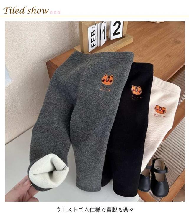 | 男の子も女の子も着られるフリースレギンス ウエストゴム仕様で着脱も楽々 ベルベットのデザインがより暖かさを提供します 漫画のトラのパターンがあり、子供たちも気に入ると思います | |