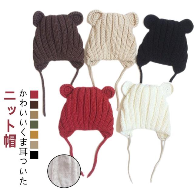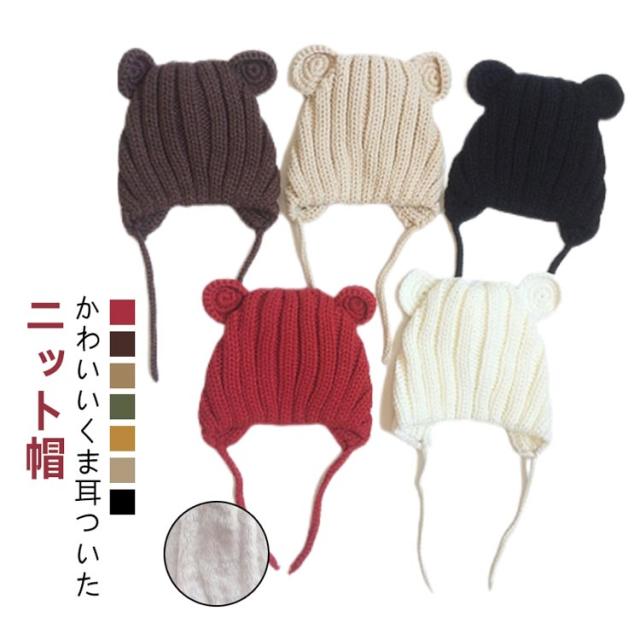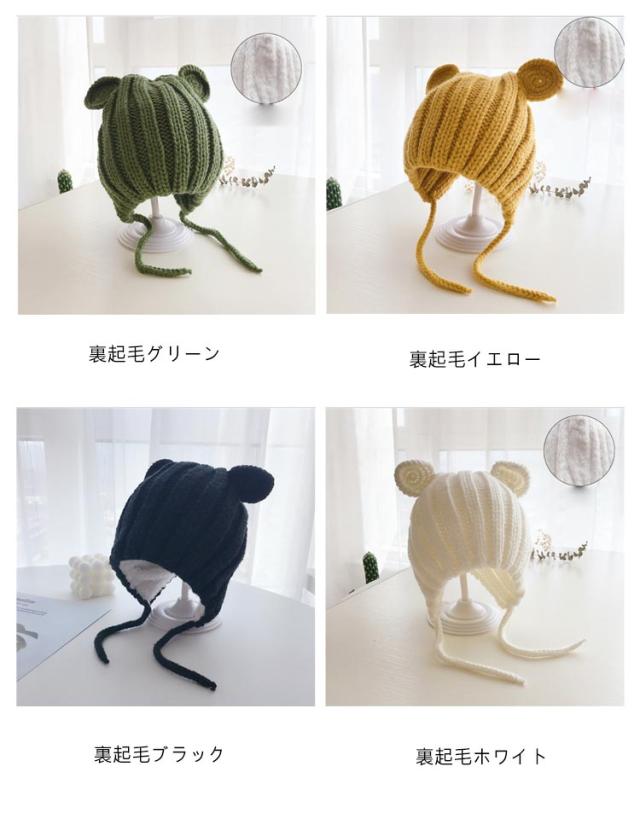 裏起毛 男の子 冬 帽子 ニット帽 動物 ベビー 新生児 くま耳 キッズ 帽子 秋冬 寒さ対策 赤ちゃん くま 女の子 耳付き 子供 伸縮性 可愛い あごひも 紐付き ニット帽 プレゼント ギフト 子ども