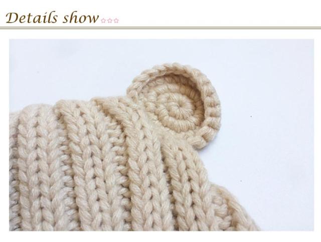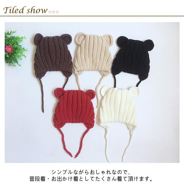| かわいいくま耳ついたニット帽 裏起毛生地で暖かく、お外遊びやお出かけにもぴったり! シンプルながらおしゃれなので、普段着・お出かけ着としてたくさん着て頂けます。 | |
